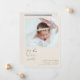 Cartão de nascimento elegante e moderno do tema do Natal, com um texto escrito à mão que diz "alegria para o nosso mundo" com uma pequena ilustração de um engano. Este é um cartão de anúncio de nascimento para as férias! Adicione suas fotos, estatísticas de natalidade e uma mensagem! O fundo é creme.
