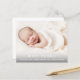 Um doce anúncio de nascimento fotográfico com o nome moderno no topo cheio sangrou foto horizontal da paisagem. A parte traseira tem duas fotos adicionais que apontam um cabeçalho de nome de cheio grande e uma mensagem pessoal da família.