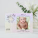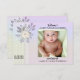 Anuncie a chegada do seu bebê com este cartão de nascimento de na moda, com uma foto carinhosa do seu filho contra um pano de fundo floral lilás retrô pastel. Personalize-o com seu próprio texto em um roteiro ou estilo diferente, criando uma adorável design neutra em termos de gênero.