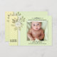 Cartão de nascimento de bebê elegante com fotografia do seu próprio bebê enquadrado por um design floral amarelo retrô e seus próprios textos (roteiro ou outro estilo). Esta é uma design neutra em termos de gênero.