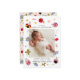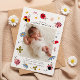 Cartão de anúncio de nascimento bonito com uma foto vertical do seu recém-nascido com ilustração de joias, flores e estrelas.