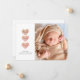 Um anúncio único e moderno de nascimento de fotos de bebês com corações aquáticas, pais e nomes de mamães dentro dos corações. Substitua esta foto por sua foto recém-nascida. Se precisar de ajuda, entre em contato comigo através do link "mensagem" na minha loja ou do ícone do Zazzle "chat" perto do topo da página. Você pode clicar em "personalizar ainda mais para usar a ferramenta design para alterar o tamanho da fonte ou da fonte.