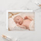 O anúncio de nascimento de uma foto de bebê moderna para uma menina ou um menino. Basta usar esta modelo para adicionar sua própria foto personalizada na frente e atrás da carta; do seu próprio doce bebê e personalizar com o nome do bebê na elegante tipografia de roteiro.