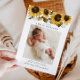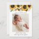 Cartão de nascimento russo com uma foto vertical do seu recém-nascido com ilustração aquosa de girassóis amarelos com o hálito do bebê.