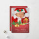 Um anúncio de nascimento encantador/cartão de Natal com a foto do seu bebê recém-nascido. O cartão tem dois sinos dourados aparados com sagrado e pinheiro com borda branca e vermelha. Quer economizar dinheiro? Impressão desta placa no papel básico de canto quadrado. Design por WebDesignHot.com