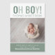 Barato personalizado de anúncios de nascimento de um bebê magnético personalizado com suas fotos e texto. Esta design minimalista moderna apresenta uma tipografia ousada em tons de verde sábio com a inscrição Oh Boy! e o nome do seu bebê, estatísticas de natalidade e fotografia abaixo. Use as ferramentas de design para editar as cores e as fontes ou adicionar mais fotos para criar seus próprios ímãs de anúncio de nascimento de menino exclusivos.