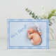 Doce anúncio de nascimento de bebê "Ele está aqui". Adicione sua própria foto para personalizar.