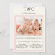Simplesmente lindo o perfeito Anúncio do Twin Baby para enviar a todos seus amigos e família anunciando o nascimento de seus filhos. Apresentando uma foto na frente com um perfil de marfim e quadro cor-de-rosa com todas as informações do bebê.