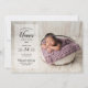 cartões com fotos de anúncio de nascimento de bebê impresso por barato. Esta design de tendências apresenta a tipografia moderna personalizada com o nome do bebê e estatísticas de natalidade e uma fotografia de sangria de cheio. O verso apresenta um impressão de faixa branca e púrpura de aquarela ou usa o espaço para adicionar mais fotos e texto, se necessário. Use as ferramentas de design para personalizar fontes e cores de texto para criar um anúncio exclusivo de nascimento de um bebê para seu recém-nascido.