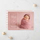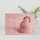 cartões com fotos de anúncio de nascimento de bebê impresso por barato. Esta design de tendências apresenta a tipografia moderna personalizada com o nome do bebê e estatísticas de natalidade e uma fotografia de sangria de cheio. O verso apresenta um impressão de faixa branco cor-de-rosa e branco ou usa o espaço para adicionar mais fotos e texto, se necessário. Use as ferramentas de design para personalizar fontes e cores de texto para criar um anúncio exclusivo de nascimento de um bebê para seu recém-nascido.