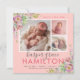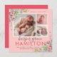 Barato de cartões com fotos de anúncio de nascimento de uma menina impressa. Este design de menina doce tem uma borda floral pastel com flores roxas e cor-de-rosa e verde sobre fundo rosa-claro. Personalize a design com o nome do bebê, estatísticas de aniversário e nascimento e adicione 3 fotos de recém-nascidos. O verso tem espaço para adicionar texto e fotos adicionais. Clique em Personalizar para editar as fontes de texto e as cores e adicionar mais fotos para criar um único anúncio de nascimento de fotos do tipo.