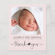 Um obrigado de bebê amigo do orçamento que você anuncia à luz com a tipografia moderna de cinzas suaves contra um fundo cor-de-rosa pastel. A frente apresenta a foto do seu bebê, o nome, a data de chegada e as estatísticas de natalidade, e o "obrigado você" escrito em uma escrita contemporânea com um coração juntando as duas palavras. No verso, adicione uma foto adicional e personalize um obrigado que você envia e os nomes dos pais e irmãos sob uma seta de coordenação fofa com um coração.