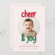Compartilhe a alegria do primeiro Natal do seu pequeno com este cartão de Natal doce e moderno. O design divertido de “alegria e felicidade” destaca a foto adorável do seu bebê, tornando-o perfeito para celebrar a chegada de um novo membro ou anunciar o nascimento do seu bebê nesta temporada festiva. Ideal para familiares e amigos que amam cartões de lembrança. Adicione o nome da criança, data e mensagem para um toque pessoal. Personalize o seu hoje.