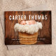 cartões com fotos de anúncio de nascimento de bebê impresso por barato. Esta design moderna minimalista mostra o nome do seu bebê e as estatísticas de natalidade sobrepostas na sua foto de recém-nascido com hemorragia de cheio. O lado inverso apresenta um fundo de cinza de luz pintado de forma russa ou usa o espaço para fotos e texto adicionais, se necessário. Use as ferramentas de design para editar as fontes e as cores, adicionar mais fotos e criar um anúncio único de nascimento de um bebê para seu novo filho ou garota.