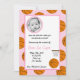 Este Convite de Chá de Bebê Esportes Bolas de Basquete Rosa e Laranja Foto Tamanho 5x7 é uma maneira adorável de convidar seus amigos e familiares para o dia especial do seu bebê!