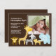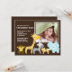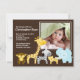 Nosso anúncio de nascimento de um bebê da selva de safari fofo é uma forma doce de anunciar para sua família e amigos que sua bebê recém-nascida ou seu bebê recém-nascido chegou. Nosso popular tema safari Cartão de Anúncio de Foto apresenta o macaco mais bonito, girafa, zebra, leão e elefante em um fundo marrom. Adicione sua foto e informações e você está pronto! ©Cocoa Studio