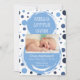 Celebre a chegada do bebê com este anúncio de nascimento azul com bolinhas e pinceladas!