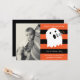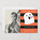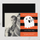 Um fantasma branco dizendo "BOOO" sobre fundo listrado em laranja e preto. Sua foto à esquerda. Adicione seu próprio texto ou fotos para voltar para um convite de festas de Dia das Bruxas ou cartões de agradecimentos de outubro. Por favor, entre em contato comigo com quaisquer perguntas ou solicitações especiais. Obrigados para passar! Foto cortesia de Leeds Wedding Photoógrafo, John Hope. Visite-o em http://www.johnhopephotography.com
