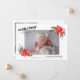 Cartão de parto de feriado russo e retrô com 2 fotos do seu recém-nascido apresentando um texto em uma fonte retrô que diz "mais alegria este ano" com coração. Há também a ilustração aquosa da poinsettia com o verde de inverno.