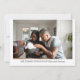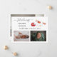 Cartão de anúncio de nascimento de bebê simples, elegante e fofo com três fotos, os textos "Apresentamos" + o nome do recém-nascido + suas estatísticas de nascimento + "Recebido com amor por" + os nomes dos pais. Certifique-se de personalizar todas as informações. Este cartão inclui uma ilustração com um unicórnio ajoelhado com brilho dourado e vermelho na crina e cauda e um bebê Brown pequenino com tom de pele entre caramelo e cacau claro, em um berço vermelho.