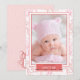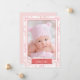 Este Anúncio de Nascimento de Bebê Menina apresenta um Coral e Impressão de Polvo Rosa e acentos Coral e Rosa. A tipografia combina o caprichoso com o tradicional, para um design divertido adequado à apresentação da sua Bebê Menina recém-nascida! O verso apresenta um padrão divertido de bolhas e os nomes dos pais orgulhosos. Para versões personalizadas, entre em contato e vamos criar algo fabuloso!