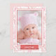 Este Anúncio de Nascimento de Bebê Menina apresenta um Coral e um Tom de Rosa com Impressão de Polvo e acentos em Coral e Rosa. A tipografia combina o caprichoso com o tradicional, para um design divertido digno da apresentação da sua Bebê Menina recém-nascida! O verso apresenta um padrão divertido de bolhas e os nomes dos pais orgulhosos. Para versões personalizadas, entre em contato e vamos criar algo fabuloso!