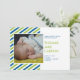 Apresente seu bebê ao mundo com este anúncio de nascimento de listras de cor moderna. Sua foto de bebê está cortada dentro de um quadro quadrado de na moda com as estatísticas de nome e nascimento à direita. Texto é digitado em uma fonte moderna e limpa. Compartilhe seu momento mais alegre com familiares e amantes com estilo e graça.