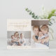 Anúncio Dourado de nascimento de um Cartão de Natal Bonito. Personalize a frente do cartão com duas fotos, seu nome de família e o ano. Personalize as costas com um cartões de natal opcional ou notícias de família, e seu nome de família.