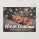 Anuncie o nascimento do seu novo bebê menino ou menina com este cartão postal de anúncio de nascimento de férias fofo com um design simples com a saudação manuscrita "Natal Mais Alegre" e flocos de neve desenhados a giz, junto com sua mensagem e estatísticas de nascimento do bebê, sobre sua foto horizontal favorita de recém-nascido. A parte traseira tem sua mensagem pessoal e endereço de devolução para envio fácil.