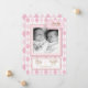 Um fundo com padrão de diamante branco e cor-de-rosa é acentuado com uma etiqueta falsa de presente e fotografa duas fotos de suas queridas filhinhas na frente e no verso. O espaço para todas as informações sobre natalidade e família neste anúncio unilateral faz dela uma escolha excelente para deixar que a família e os amigos conheçam as suas maravilhosas notícias.