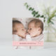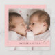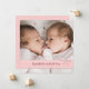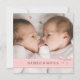A design cor-de-rosa Trendy é perfeita para anunciar a chegada das suas filhinhas. Apresentando uma foto do tamanho do cheio na frente, destacada com uma doce banda de rosa, apadrinhada com pequenos círculos e ponteada com um arco, seus pequenos anjos e seus nomes próprios também são destacados aqui. No verso, as caixas de texto são projetadas com espaço para nomes e detalhes de bebês. Uma primeira introdução encantadora das suas meninas à família e aos amigos.
