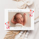 Celebre a chegada do seu bebê com este cartão de nascimento colorido e moderno temível. A design apresenta a foto horizontal do seu bebê, na frente e no centro, rodeada por corações lúdicos em tons de vermelho, azul, rosa, pincel e coral — criando uma aparência divertida e alegre. Personalize a frente com o nome do seu bebê e as estatísticas de natalidade em uma fonte limpa e contemporânea. O verso inclui espaço para três fotos quadradas e uma mensagem personalizada, fazer-a como um perfeito guardião para a família e os amigos. Esta design vibrante e cheia de amor funciona lindamente para bebês meninos, meninas ou anúncios neutros de gênero a qualquer momento do ano.