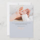 Este anúncio de nascimento, belamente simples e elegante, tem um solteiro de fotografia oval em frente com detalhes clássicos de tipografia para o nome e as estatísticas do bebê, incluindo data de nascimento, peso e comprimento. Pastel floral macio com detalhes num pastel de coral rosa pincelado e pontos azuis de periwinkle macios. O verso inclui um espaço para mensagens personalizadas familiares personalizadas opcionais e uma segunda foto retangular grande.