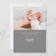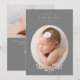 Este anúncio de nascimento, belamente simples e elegante, tem um solteiro de fotografia oval em frente com detalhes clássicos de tipografia para o nome e as estatísticas do bebê, incluindo data de nascimento, peso e comprimento. Pastel floral macio com detalhes num pastel de coral rosa pincelado e pontos azuis de periwinkle macios. O verso inclui um espaço para mensagens personalizadas familiares personalizadas opcionais e uma segunda foto retangular grande.