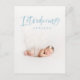 Impressionante anúncio de nascimento de fotos com script de cor azul-d-água. Parte de uma coleção.