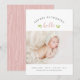 Barato de cartões com fotos de anúncio de nascimento de uma menina impressa. Este doce design tem um layout de tipografia minimalista com caligrafia "olá" e sotaques botânicos de aquarela verde sobre fundo branco. Personalize a design com o nome do bebê, estatísticas de aniversário e nascimento e foto de recém-nascido. O verso tem um padrão coordenado de grãos de madeira com espaço para adicionar texto e fotos adicionais. Clique em Personalizar para editar as fontes de texto e as cores e adicionar mais fotos para criar um único anúncio de nascimento de fotos para a menina.