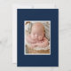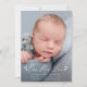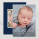 Anúncio de nascimento de fotos elegante com "Our New Love" exibido em uma cobertura de roteiro branca com corações em cada lado. Personalize o simples anúncio de nascimento com uma fotografia vertical de recém-nascidos, o nome do bebê, as estatísticas de natalidade e bem-vinda pela informação. O anúncio é revertido para exibir uma foto adicional com um fundo de marinho sólido. O anúncio de 2 fotos de nascimento é perfeito para ser usado como anúncio de nascimento de Dia de os namorados!