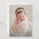 Anúncio de nascimento de fotos elegante com "Our New Love" exibido em uma cobertura de roteiro branca com corações em cada lado. Personalize o simples anúncio de nascimento com uma fotografia vertical de recém-nascidos, o nome do bebê, as estatísticas de natalidade e bem-vinda pela informação. O anúncio é revertido para exibir uma foto adicional com um fundo de massa escura sólido. O anúncio de 2 fotos de nascimento é perfeito para ser usado como anúncio de nascimento de Dia de os namorados!