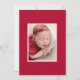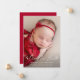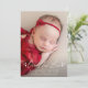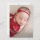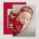 Anúncio de nascimento de fotos elegante com "Our New Love" exibido em uma cobertura de roteiro branca com corações em cada lado. Personalize o simples anúncio de nascimento com uma fotografia vertical de recém-nascidos, o nome do bebê, as estatísticas de natalidade e bem-vinda pela informação. O anúncio é revertido para exibir uma foto adicional com um fundo vermelho escuro sólido. O anúncio de 2 fotos de nascimento é perfeito para ser usado como anúncio de nascimento de Dia de os namorados!
