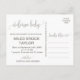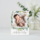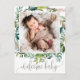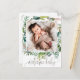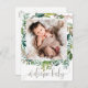 Este cartão postal de anúncio de fotografia foliar é perfeito para um anúncio de bebê rústico. A design apresenta uma fuselagem de folhas verdes e botânicos com folhas verdes. Personalize as costas com o nome do cheio do bebê, estatísticas de natalidade, nomes dos pais e endereço de retorno.