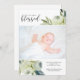 Um belo anúncio de nascimento que mostra a foto do seu recém-nascido na frente enquadrado por um lindo design floral branco de aquarela. Uma tipografia de script diz "Muito Abençoado". Adicione as estatísticas de natalidade do seu bebê e o seu nome para personalizar. A parte de trás apresenta uma segunda foto destacada por flores pintadas à mão. Perfeito nos feriados ou em qualquer época do ano.