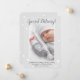 Compartilhe as boas notícias do seu "Parto Especial", o nascimento do seu novo bebê precioso com este anúncio de nascimento de fotos moderno. Adicione a sua foto desejada de orientação para retratos e personalize o modelo de texto com o nome do seu bebê e as estatísticas de natalidade. Há também um modelo de texto na parte traseira da placa para personalizar com o texto desejado. Este design tem um fundo de cinza leve com manchas brancas dispersas. Também está disponível em outras cores populares.