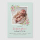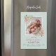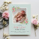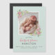 Magnetos de fotos de anúncio de nascimento de menina impressas por barato. Esta design de menina doce tem uma borda floral pastel com flores roxas e cor-de-rosa e verde num fundo de menta. Personalize a design com o nome do bebê, estatísticas de aniversário e nascimento e fotos de recém-nascidos. Clique em Personalizar para editar as fontes e cores do texto e adicionar mais fotos para criar um único anúncio de nascimento magnético.