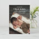 Este anúncio de nascimento simples e minimalista mostra seu novo pacote de alegria com uma design de duas fotos, de dois lados. A frente do anúncio do bebê inclui uma camada moderna de texto branco no topo e uma foto vertical de sangria de cheio (é melhor usar uma foto com fundo escuro). Na parte de trás do cartão, você pode adicionar uma segunda foto e também escrever uma mensagem pessoal para os entes queridos.