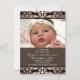 Este Elegante anúncio de nascimento personalizável apresenta uma cor damasco rosa e preta sobre um fundo castanho. Personalize-o adicionando fotos e detalhes na fonte de sua escolha!