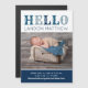 Barato personalizado de anúncios de nascimento de um bebê magnético personalizado com suas fotos e texto. Esta design minimalista moderna apresenta uma tipografia ousada em tons de azul com a inscrição HELLO e o nome do seu bebê, estatísticas de natalidade e fotografia abaixo. Use as ferramentas de design para editar as cores e as fontes ou adicionar mais fotos para criar seus próprios ímãs de anúncio de nascimento de menino exclusivos.