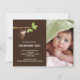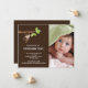 O nosso pequeno macaco chegou é um jeito doce de anunciar à família e amigos que o seu pequeno querido chegou. O cartão de anúncio de foto apresenta o mais fofo pequeno macaco pendurado em um galho de árvore em um fundo marrom com um detalhe de bolinhas. Adicione sua foto e informações e está tudo pronto! ©cocoa studio