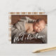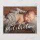 Um simples cartão de feriado fotográfico com primeiro natal e ramificação manuscritos e tipo mínimo. Clique no botão editar para personalizar este design.