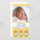 Nosso Anúncio de Nascimento da Foto do Bebê apresenta uma linha de pinos de fralda de pato amarelo em um fundo de faixa amarela e vermelha. Personalize nosso Anúncio de Nascimento com suas informações sobre Foto e bebê e você está pronto! Produtos correspondentes também disponíveis.