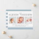 Anuncie a chegada de seu doce bebê com nossos anúncios de nascimento modernos e neutros no estilo de colagem, apresentando três de suas fotos favoritas de recém-nascidos em formato quadrado, acentuadas com os modernos tipos e elementos listrados em preto suave e azul claro do céu. Personalize com o nome do seu bebê, as estatísticas de natalidade e a mensagem da família usando os campos fornecidos.
